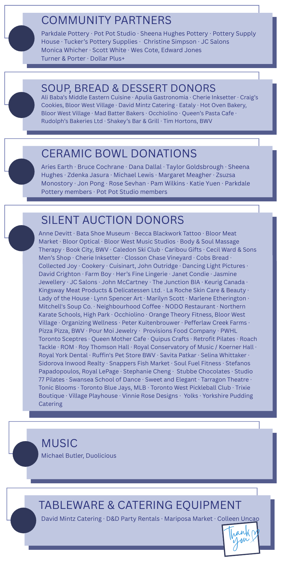 The time, effort and generous contributions of many individuals and businesses makes this event possible. We are tremendously grateful to: