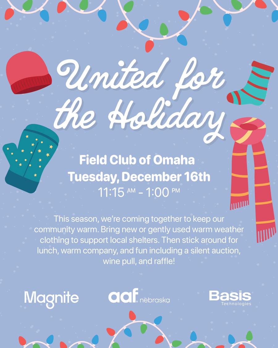 Celebrate the season with AAF Nebraska at our annual holiday luncheon. Join us for a festive afternoon of fun, camaraderie, and giving back.️