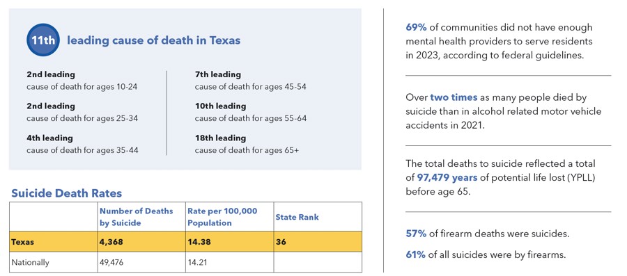 In 2023, 49,476 died by suicide and an estimated 1.6 million people attempted suicide. Each loss of life is tragic, and everyone can get involved in preventing this leading cause of death.