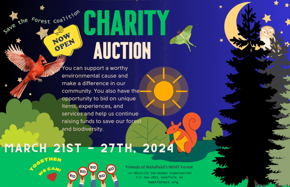 The Friends of Wakefield's NEMT Forest Auction is now closed for bidding. Stay tuned for the next one.
