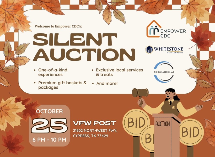 Support Empower CDC’s mission by bidding on a variety of exciting items and experiences—all while giving back to the community. Proceeds from this auction help fund our programs and services that uplift families across Houston. Let the bidding begin!