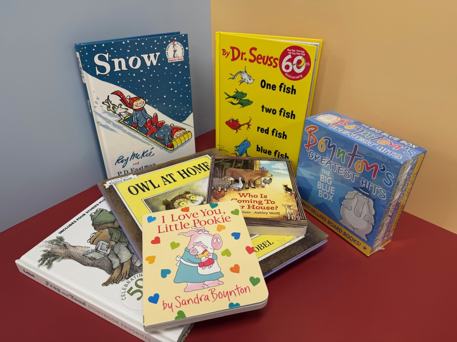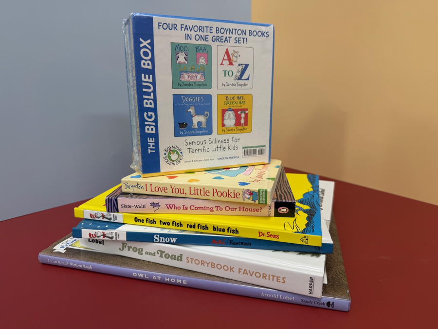 This curated collection of children's books is sure to include new favorites for the children in your life. You'll find included the following titles: One Fish Two Fish... (Dr. Seuss); Boynton's Greatest Hits-4 books (Sandra Boynton); Frog and Toad Storybook Favorites (Arnold Lobel); Who Is Coming To Our House? (Joseph Slate & Ashley Wolff); Snow (PD Eastman); I Love You, Little Pookie (Sandra Boynton); and Owl at Home (Arnold Lobel). Spark a love of reading in young minds and create fun new family memories through this delightful collection of books!
