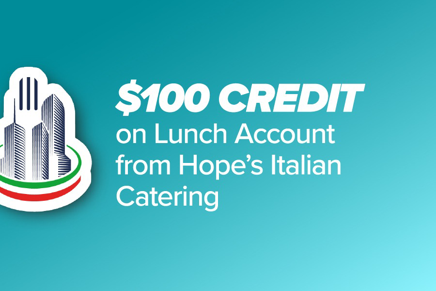 $100 Credit on Lunch Account from Hope`s Italian Catering