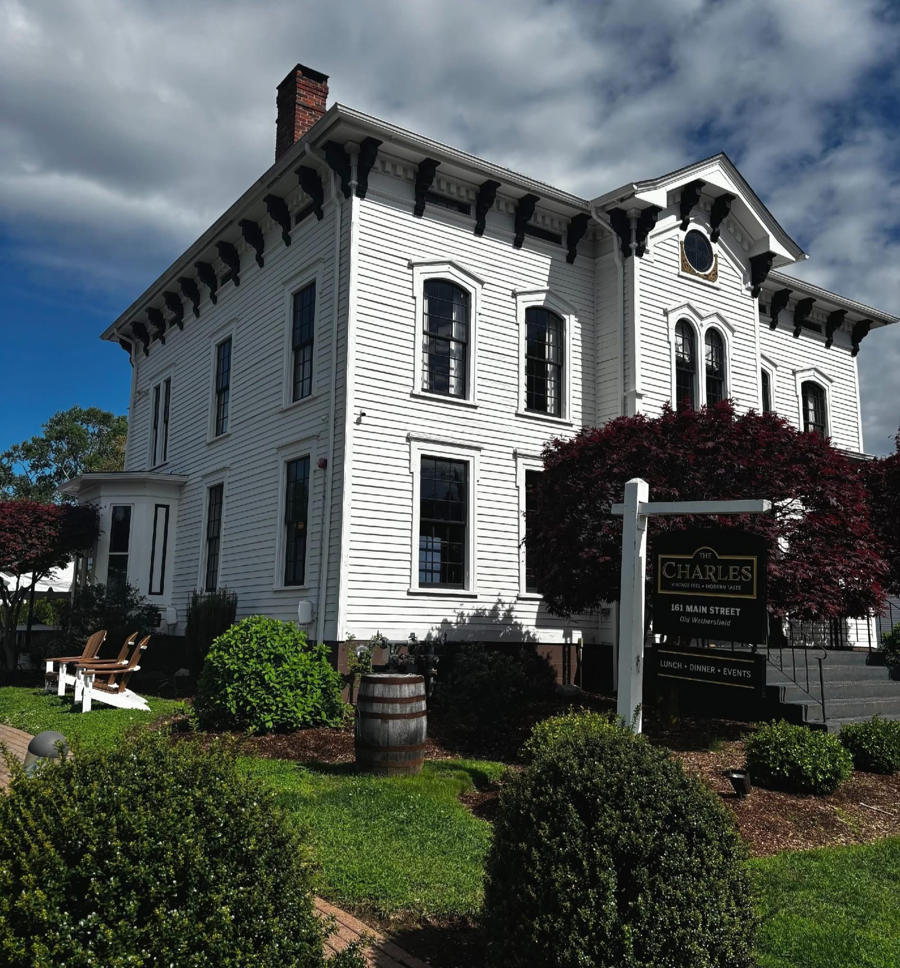 Rich in history and culture, Old Wethersfield village has long been the heart of Wethersfield and a destination for seekers of classic New England village charm. 161 Main Street has been beautifully restored while preserving so much of its history. The E.G. Robbins House, was originally built by Elijah Wright around 1790. Wright served as a militia captain in the Revolutionary War. The house was extensively remodeled in 1850, by the seed company owner, Silas W. Robbins and later owned by his brother, Edward Griswold Robbins (E.G Robbins). It was later the Pyquaug Inn, and was the venue for many special occassions and weddings of Wethersfield and the surrounding area. The Charles, named in honor of the owners grandfathers, carries on the tradition of serving as a place to gather and celebrate.