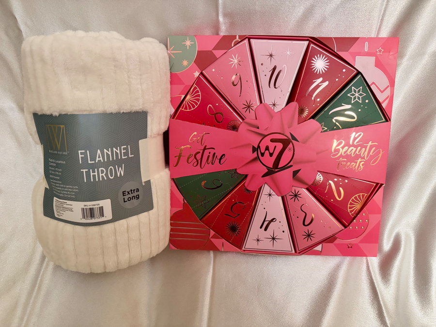 12 Days of Make-up surprise items , cream extra long flannel throw