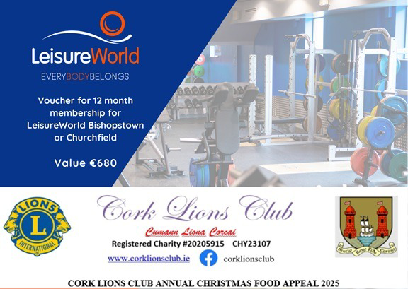 Voucher for 12 month membership for Leisureworld Bishopstown or Churchfield