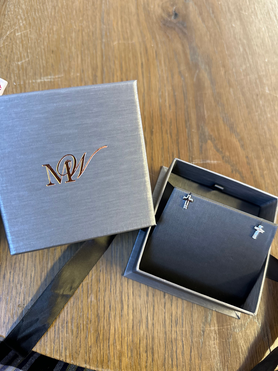 14K White Gold Cross Studs
