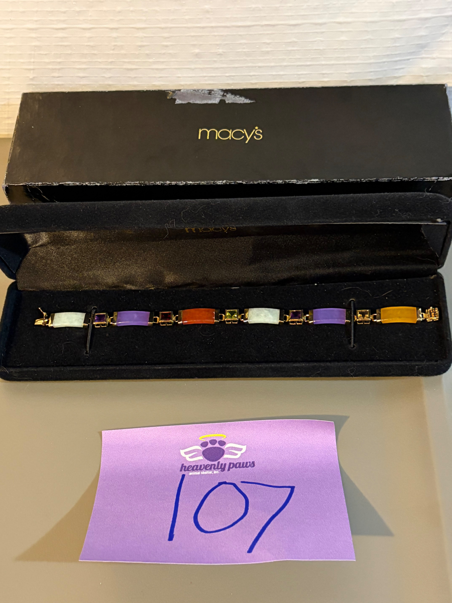 14kt Gold Jade Bar and Gemstone Bracelet