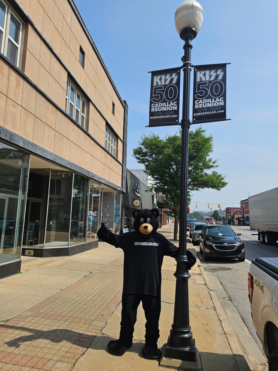 Own a piece of Cadillac KISStory! These authentic street banners were proudly displayed in downtown Cadillac during the KISS 50th Anniversary Reunion year in 2025, celebrating the band’s legendary 1975 visit that rocked our town and made music history. Featuring bold black-and-white designs and official event branding & signed by coach Jim Neff, who made the KISS visit to Cadillac possible. These limited-edition banners are the ultimate collectible for KISS fans and Cadillac locals alike. Authentic. Iconic. One-of-a-kind.