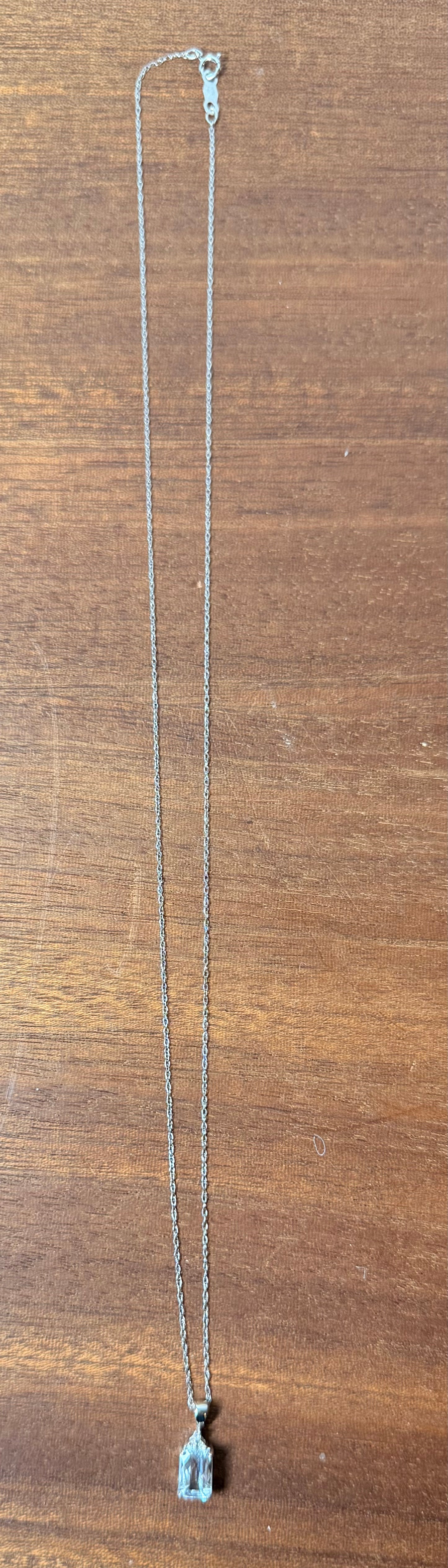 Color: Silver with aquamarine drop pendant