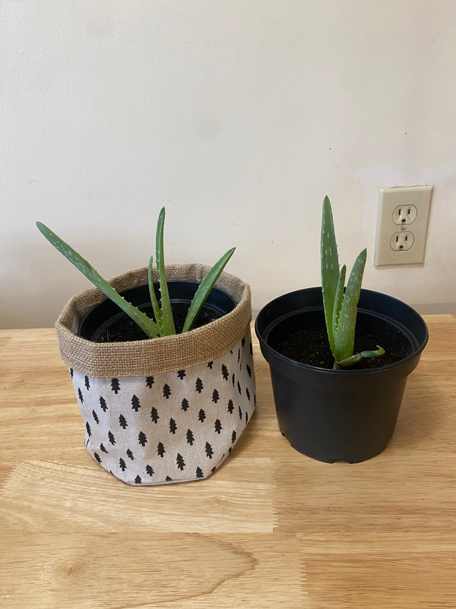 Two potted aloe vera plants -- one for yourself and one to give away. Good to have in the house as its sap can aid healing through its antibacterial, anti-inflammatory, and soothing properties, making it particularly effective for minor burns, sunburns, and skin irritations by reducing pain, redness, and itching.