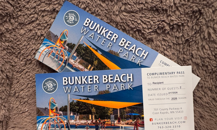 2 Complimentary Passes to Bunker Beach Water Park (2 guests per pass - 4 guests total). (Valid thru 2026 Season)