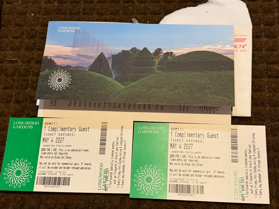 (2) Longwood Gardens Tickets