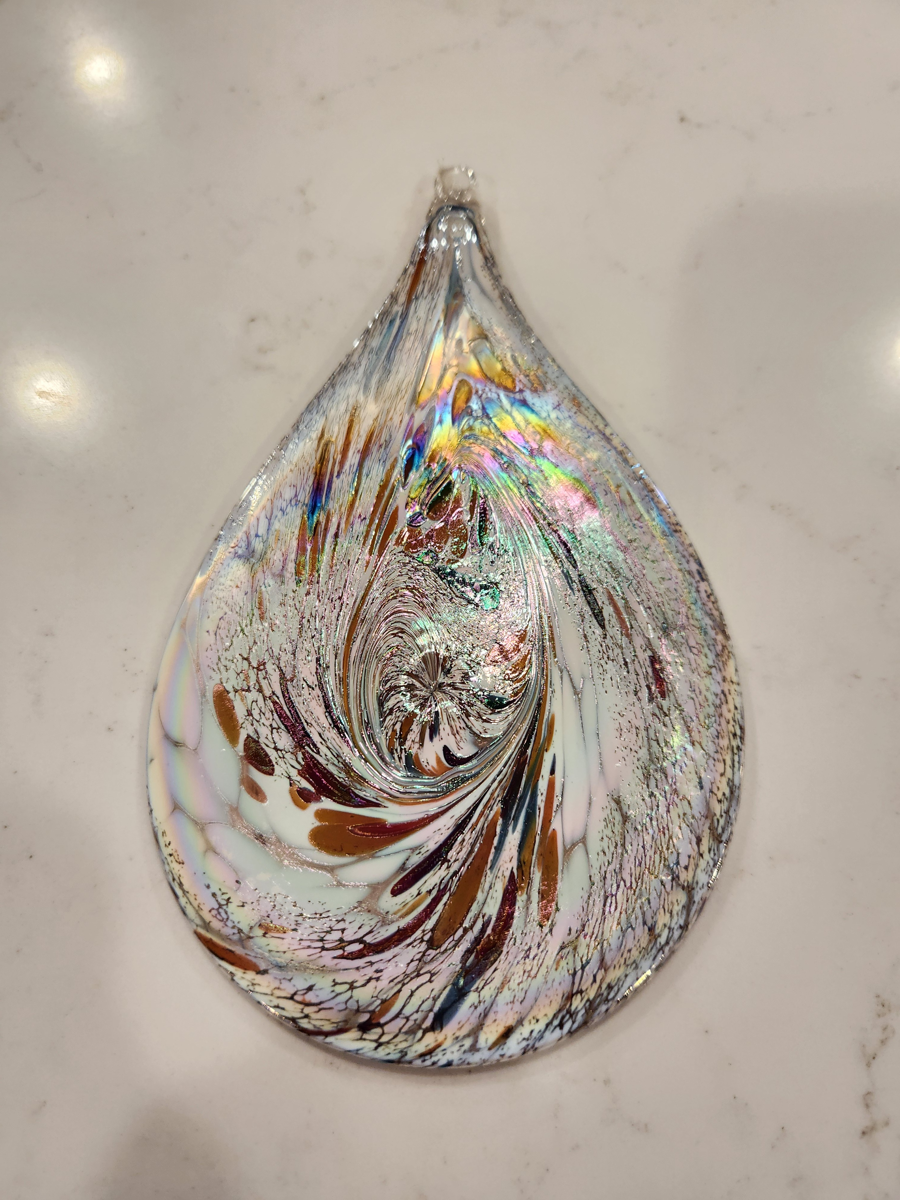 Elevate your home decor with this stunning set of 2 pearlized glass teardrops. These exquisite pieces are perfect for adding a touch of elegance and sophistication to any room. The beautiful pearlized finish reflects light beautifully, creating a captivating ambiance. Ideal for display on shelves, mantels, as part of a centerpiece or can be beautifully displayed in windows as they can be hung. These teardrops are not only decorative but also a statement of style. Enhance your living space with these unique and eye-catching home decor items that are sure to impress your guests.