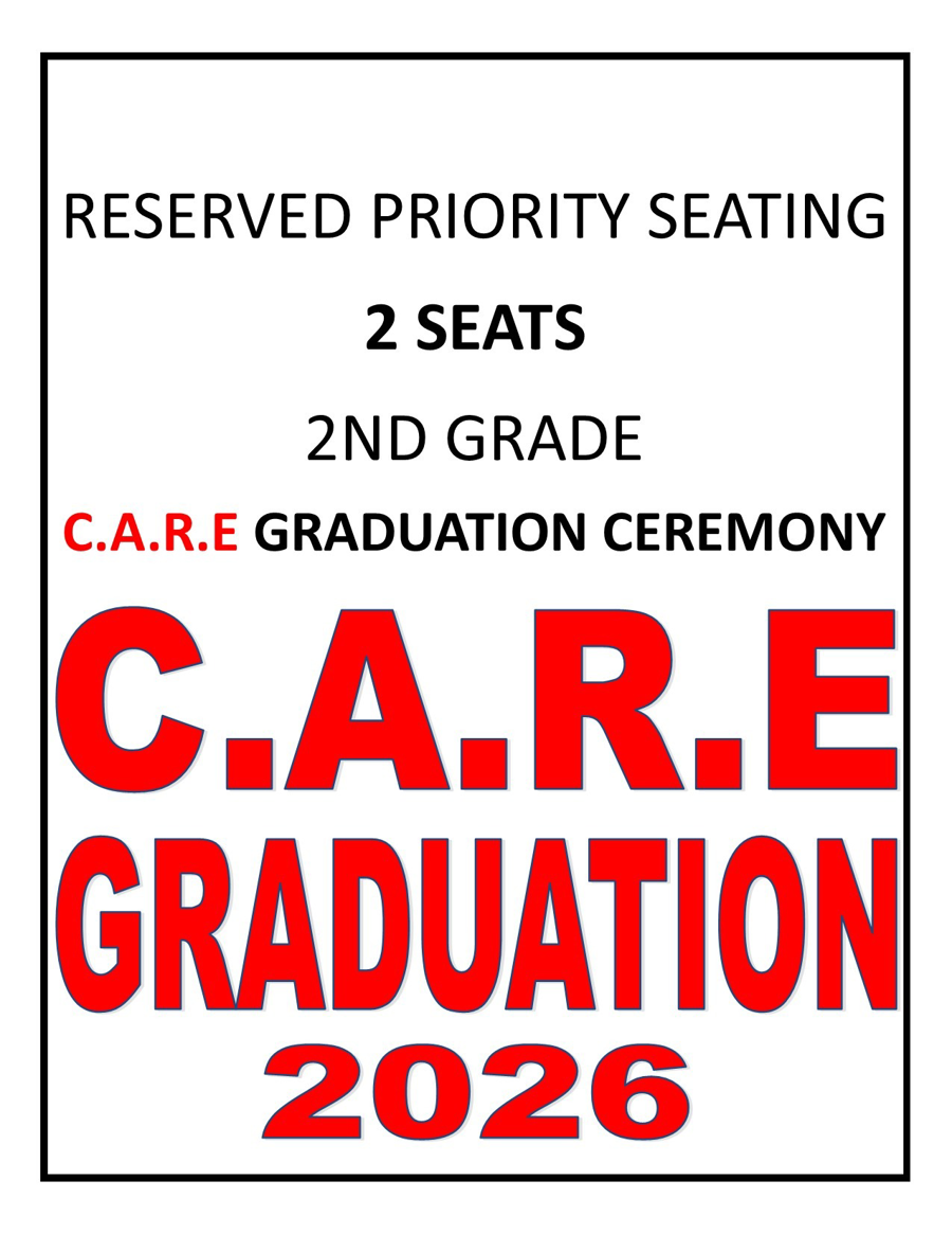 2 Seats with Reserved Priority Seating for CARE Graduation.