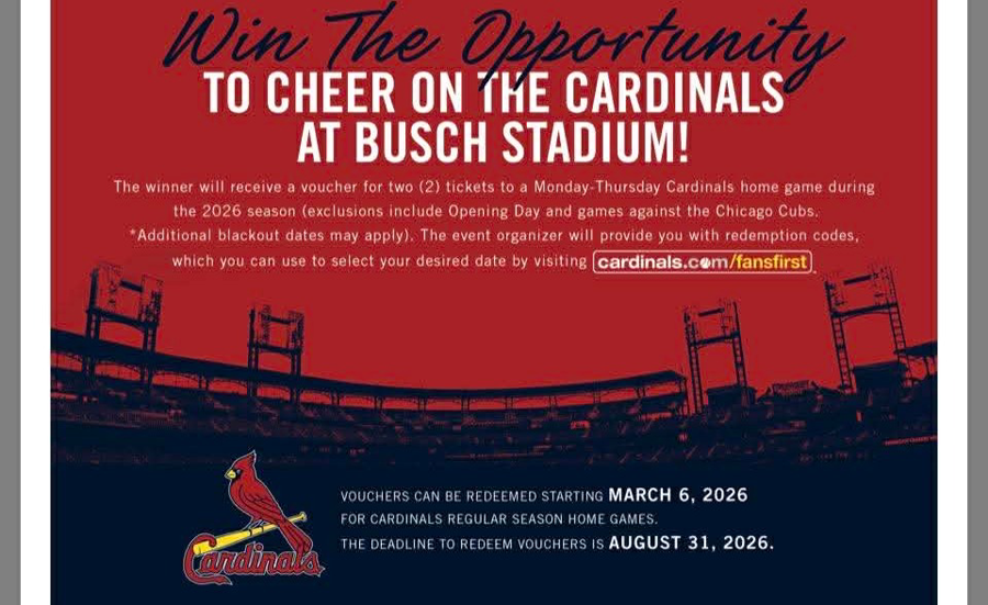 Cheer on the Cardinals in person with 2 tickets! This special 2026 Marty Pass honors longtime Cardinals executive Marty Hendin, a true ambassador who always put fans first. Tickets are based on availability and must be redeemed by August 31, 2026. Pass is transferable—perfect for a gift or a fun day out!