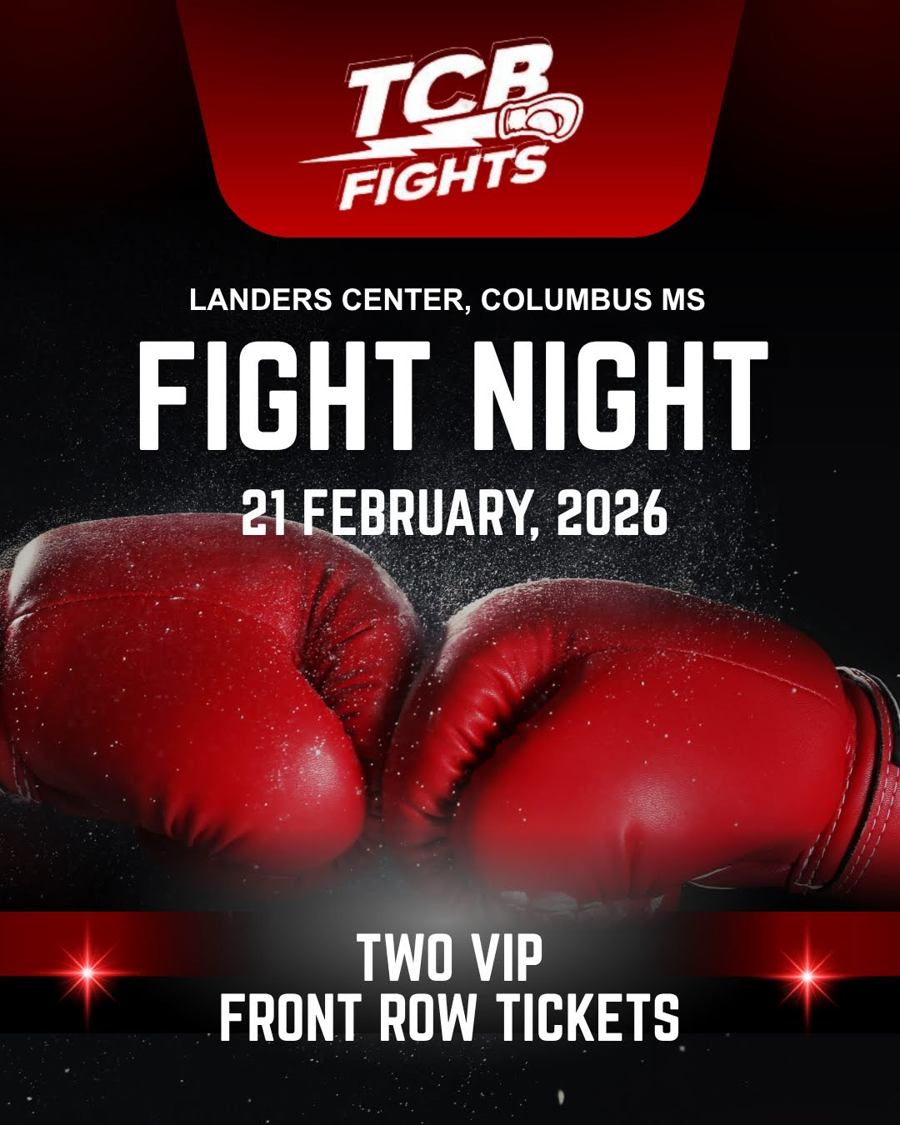 Get on your feet for some world class BOXING hosted by TCB Fights of Tupelo at the Landers Center in Columbus February 21, 2026. Stand front row and cheer on the fighters like the VIP you are.
