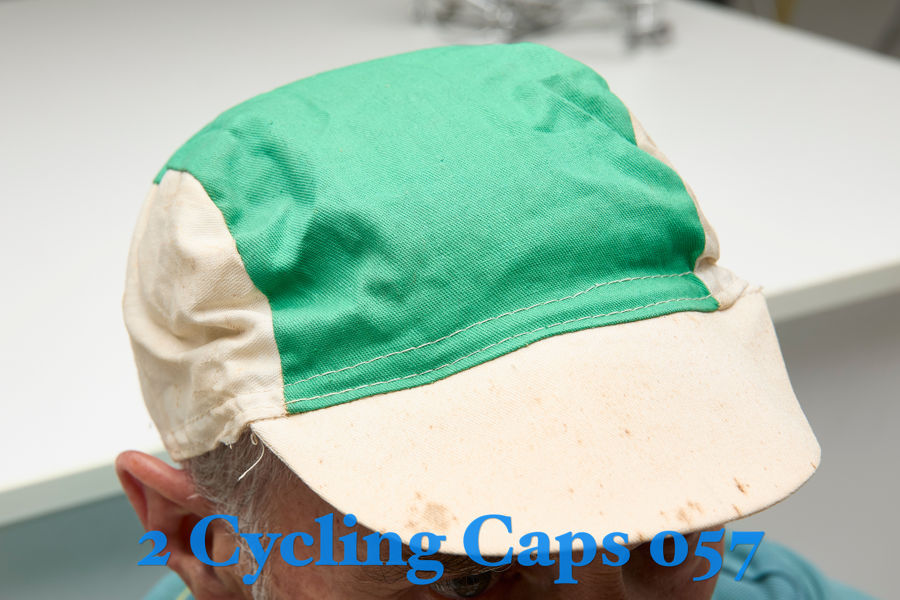 2 White Cycling Caps (1x Green highlight 1x Yellow)