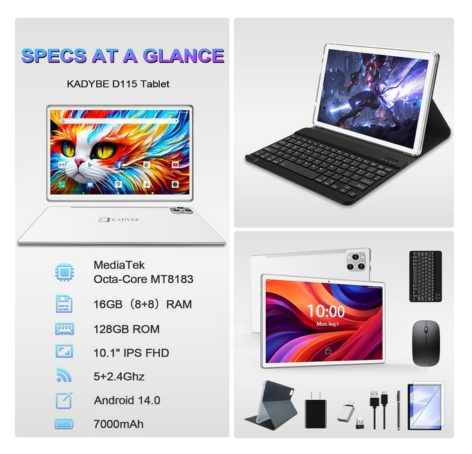 2026 Android 14 Tablet 10 Inch, 128GB ROM+16GB RAM (8+8 Virtual), 2 In 1 Tablet with keyboard, Powerful Octa-Core+13MP Camera, 1TB TF Expandable, FHD IPS Display WiFi Tableta PC.