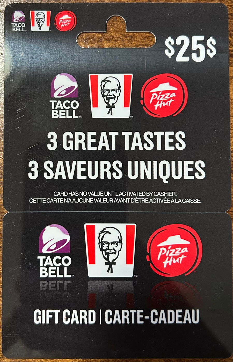 $25 Gift Card to Taco Bell, KFC or Pizza Hut donated by Family News Stand