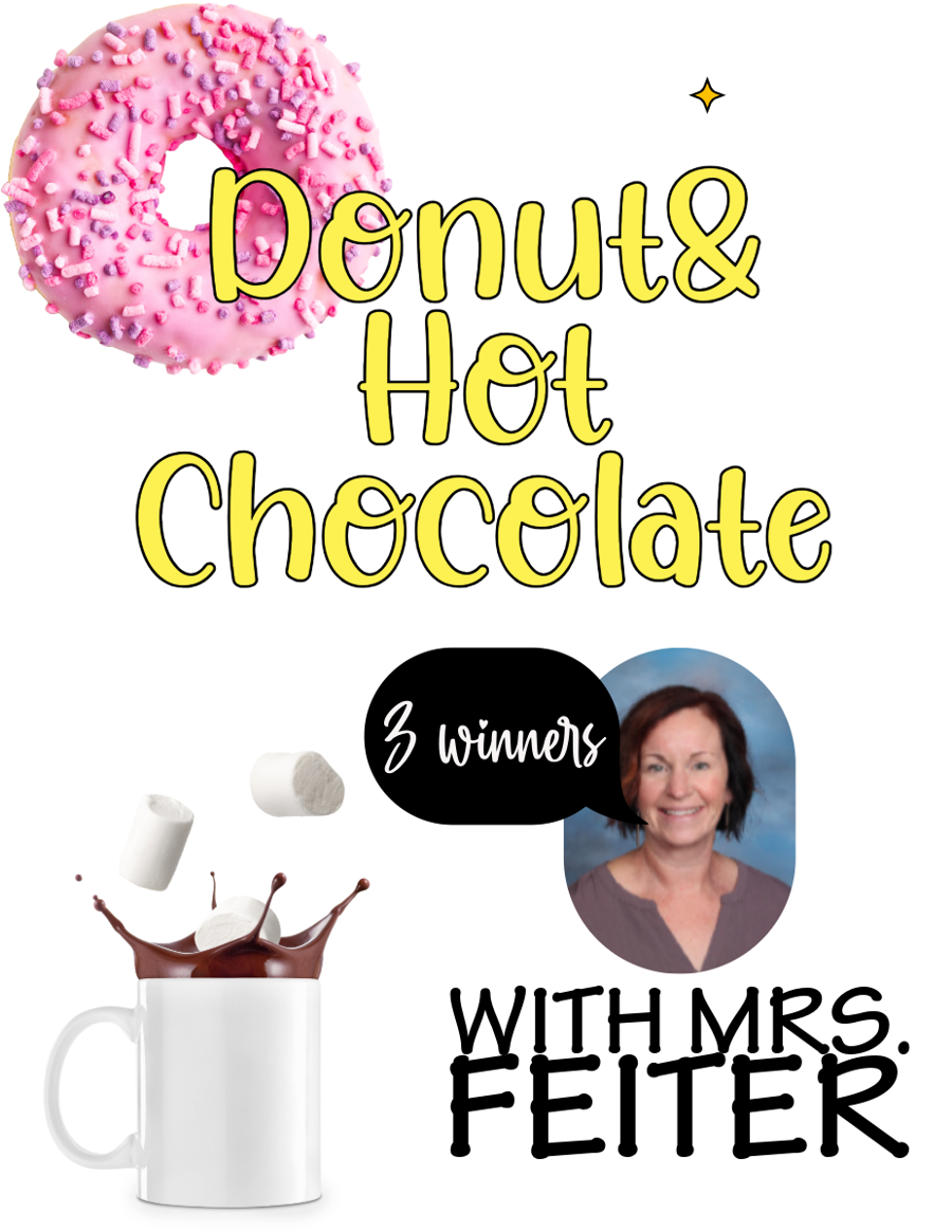 Three lucky winners will get the chance to pick up a delicious donut and a warm cup of hot chocolate served in a reusable mug before school starts. This is a unique opportunity to enjoy a tasty treat while chatting with Mrs. Feiter. Don’t miss your chance to win this sweet start to your day! (one winner per item number)