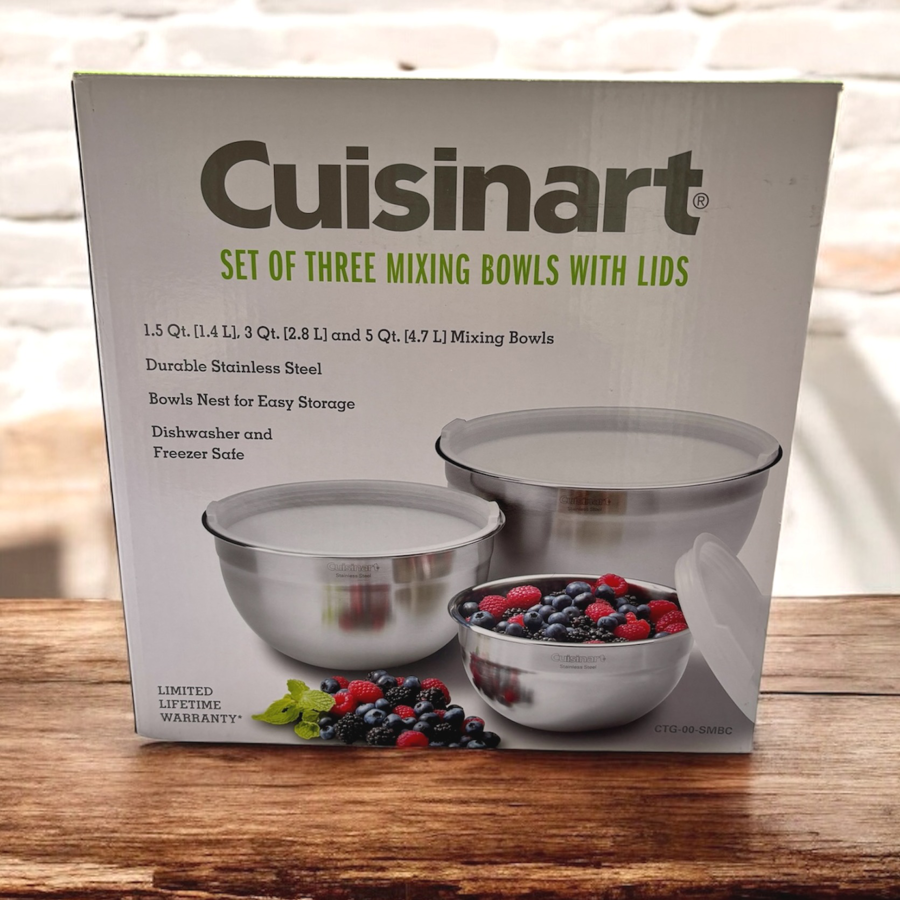 - 1.5 Qt. (1.4 L), 3 Qt. (2.8 L) and 5 Qt. (4.7 L) stainless steel bowls with lids
