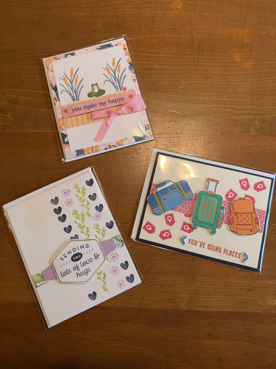 3 Stampin Up holiday cards - Make me happy, going places and lots of love & hugs