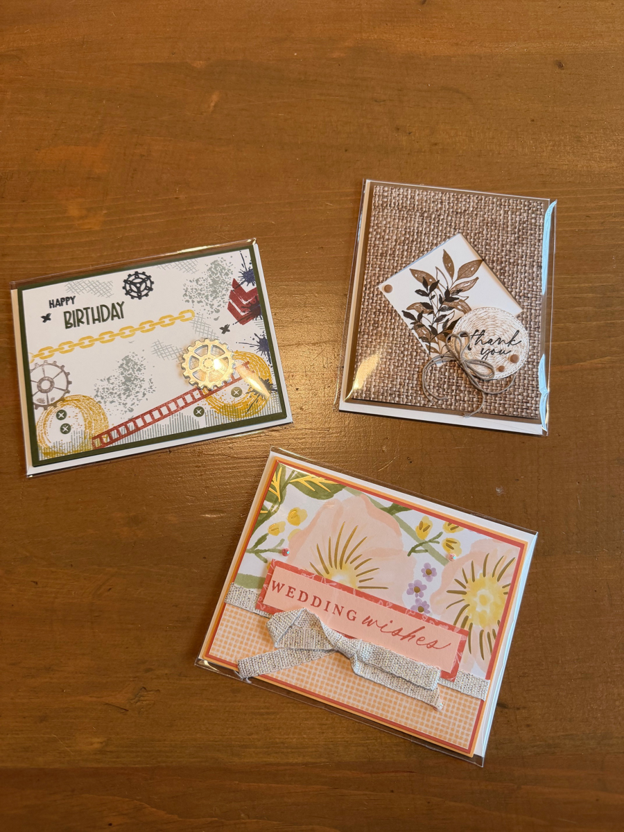 3 Stampin Up holiday cards - Happy Birthday, Thank You, Wedding Wishes