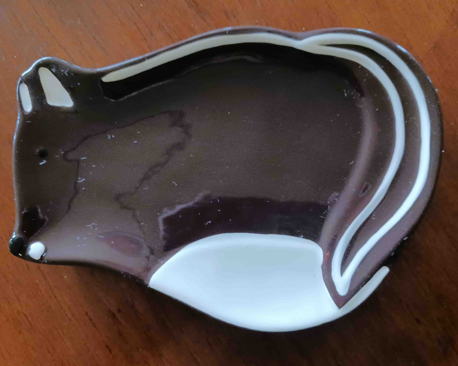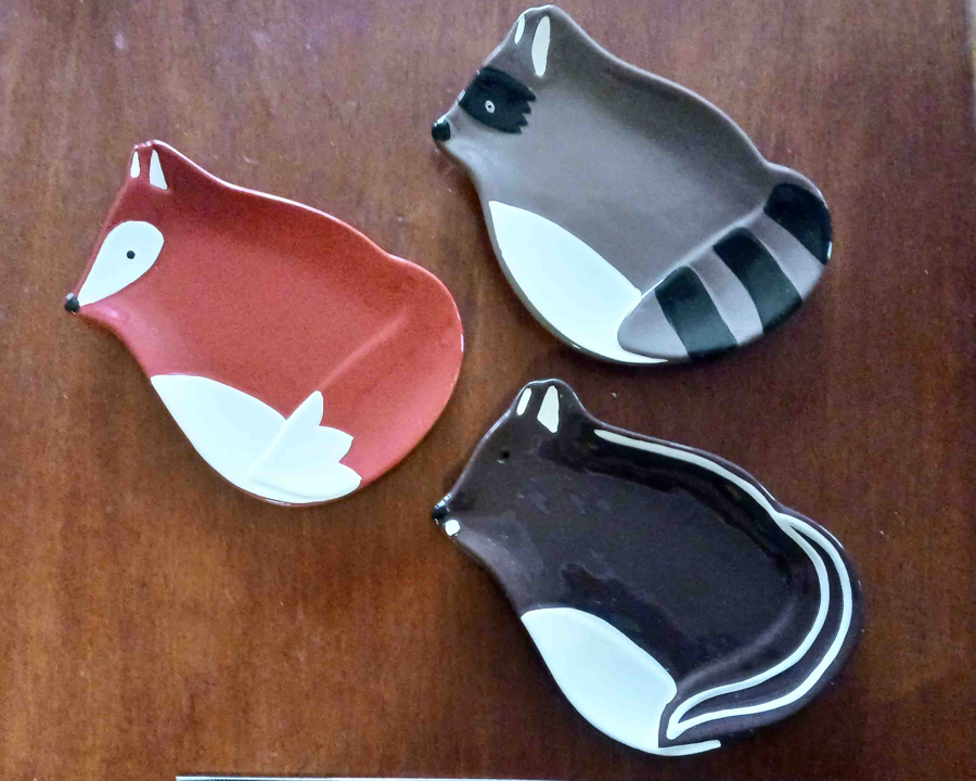 3 adorable wild animal dishes. Unique and perfect for condiments. Includes a skunk, racoon, and a fox.