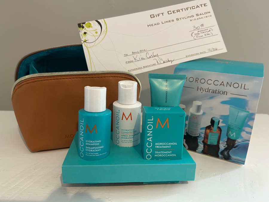 $30 Gift Certificate To Headlines Styling Salon For Haircut From Kim & Travel Size Bag of MOROCCANOIL Hydration Products: