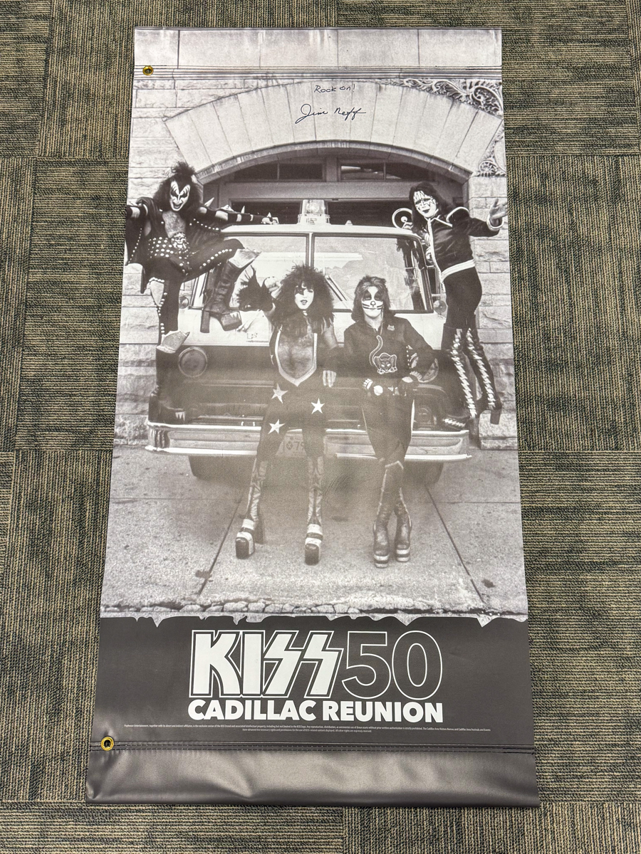 30" x 60" KISS 50th Cadillac Reunion Autographed Street Banner - KISS w/Fire Truck