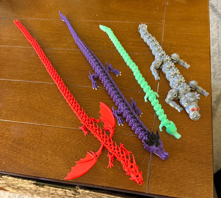 3D printed articulated Dragon set