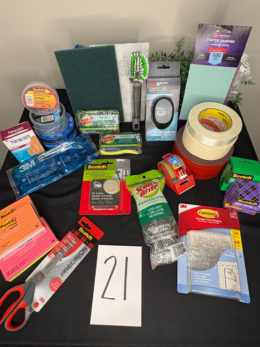 3M Brand Supplies: Hand sander, sand paper, all types of tapes from duct to wrapping to electrical!