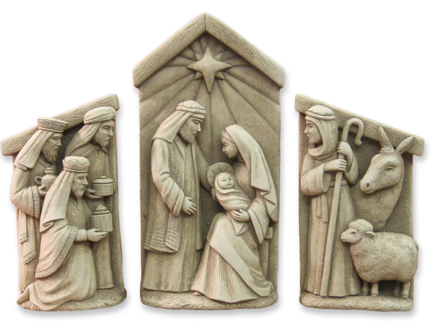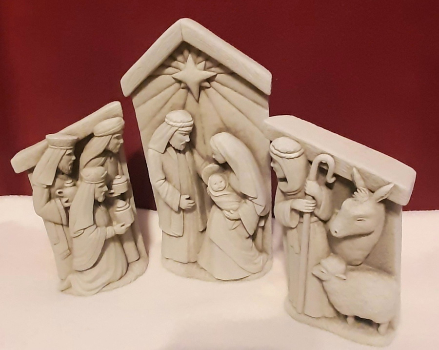 This exquisite 3-Piece Nativity Set by Carruth Studios is a beautiful addition to your holiday decor. Each piece is handcrafted in stone, showcasing the artistry and dedication that goes into creating a truly unique representation of the nativity scene. Nestled together, this set measures 7 x 10 x 2 inches. With a touch of earth, this set brings warmth and a natural aesthetic to your celebrations, making it a perfect centerpiece for your Christmas festivities. Celebrate the spirit of the season with this stunning nativity set that captures the essence of the holiday.