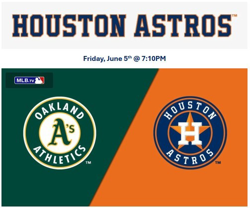 4 Club Seats- Astros Tickets- Vs Oakland Athletics