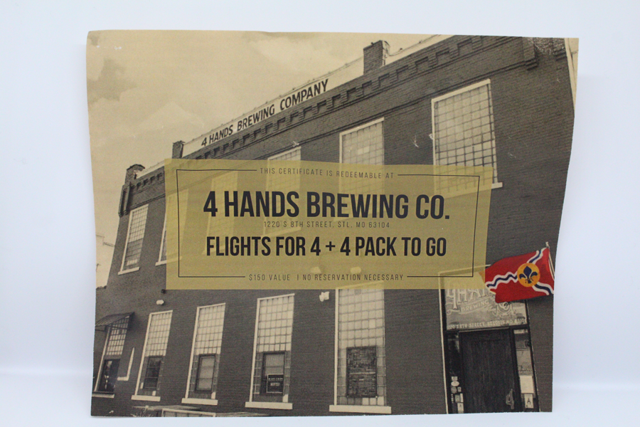 4 Hands Brewery Flights Gift Certificate - Flights for 4 people and a 4 pack to take home. $150 value