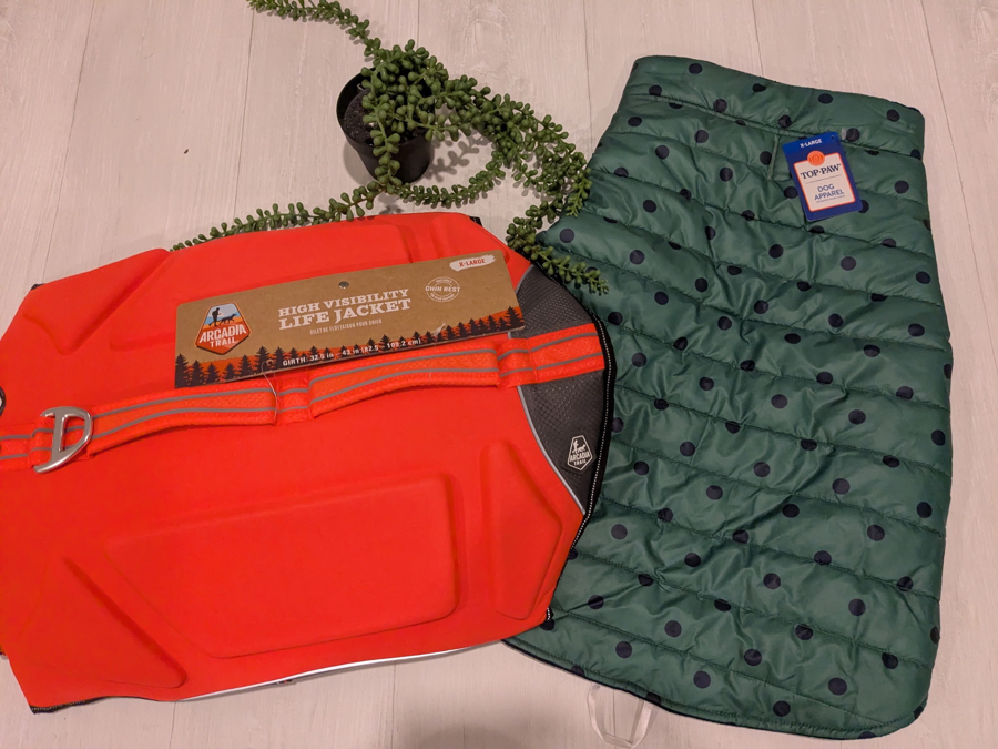 Keep your pup safe and stylish with this XL Dog Life Vest for water adventures and a cozy XL Puff Vest for cooler days. Perfect for active dogs who love both the outdoors and snuggling up in comfort. A big thank you to PetSmart Towson for their generous donation!