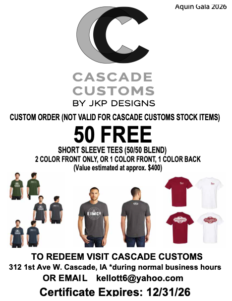50 free customized, screen-printed, short-sleeve t-shirts from Cascade Customs.