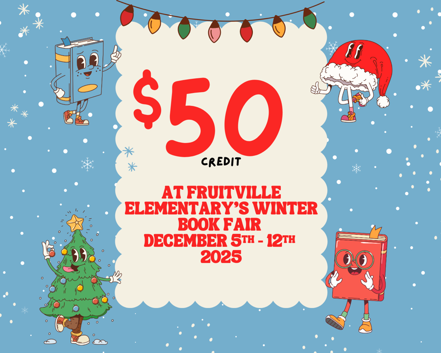 Treat yourself to a good book- or 5! Valid at Fruitville Elementary’s Winter Scholastic Book Fair December 5th-12th 2025.