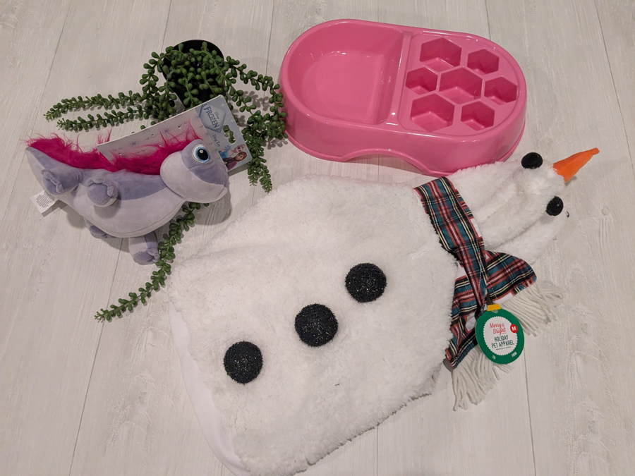 Your pup will be both stylish and entertained with this fun bundle! Included is a medium Frozen-themed pet outfit, a playful dog toy, and a slow feeder to make mealtime last longer while keeping your furry friend engaged. Special thanks to PetSmart Towson for this awesome donation supporting our cause! 🐾💙