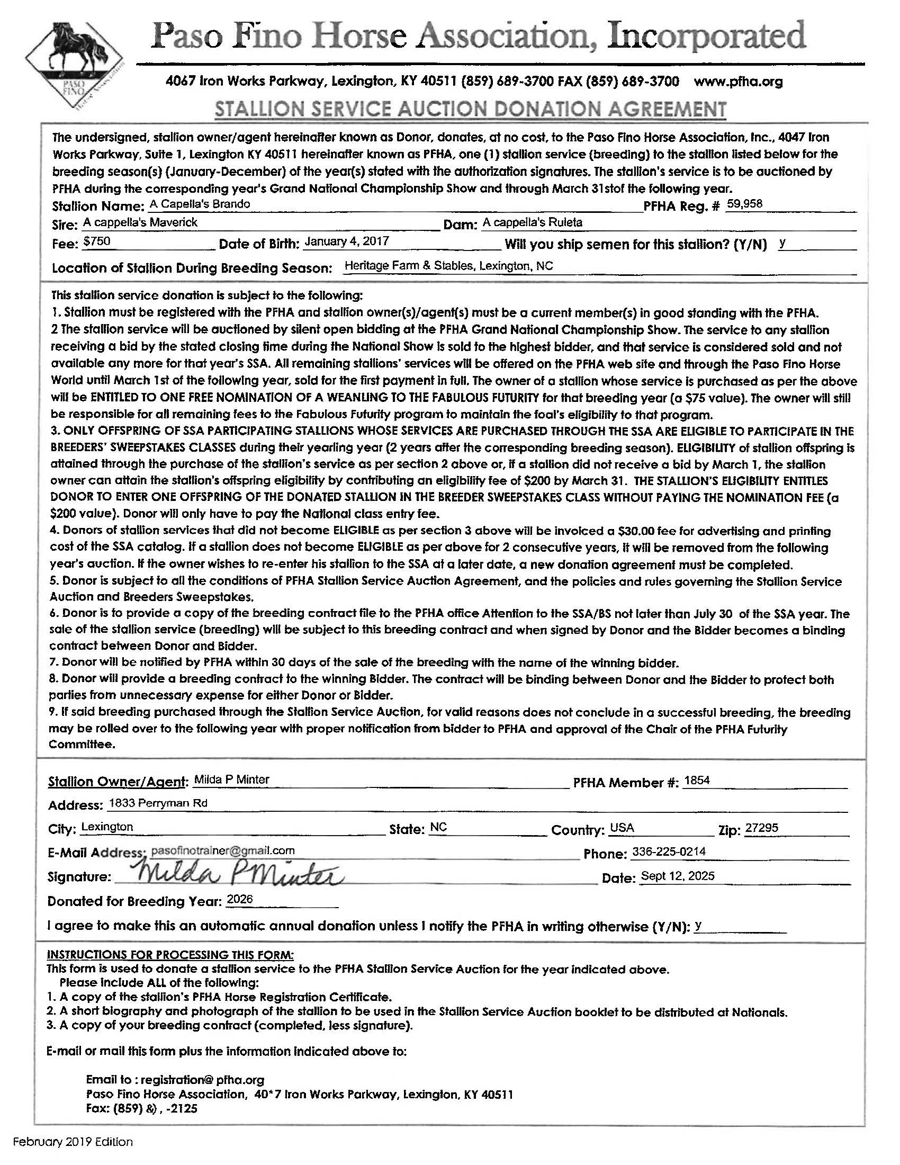 Sire: A cappella's Maverick Dam: A cappella's Ruleta A cappella's Brando Brando is a bay pinto stallion with a gentle temperament and beautiful conformation, standing just over 14 hands tall. He is homozygous for the pinto color (will produce all pinto babies) and can produce black, bay, or chestnut pintos, depending on the mare color. Brando is athletic and smooth and has a wonderful canter. He would be a great choice for colorful pinto babies with good disposition and moderate brio.