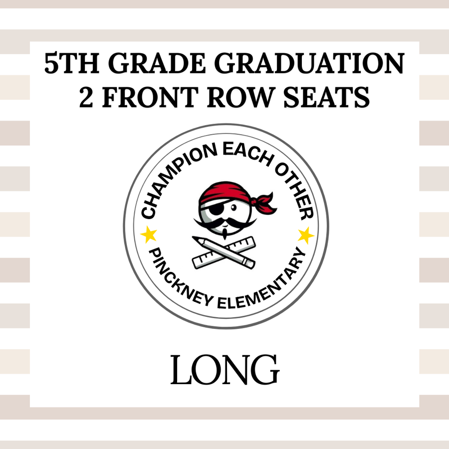 Get ready to celebrate a milestone with our exclusive auction for 5th Grade Graduation Front Row Seats for MRS. LONG'S CLASS! With your 2 front row seats, you'll be right there to capture every smile and cheer, making this a day to remember.