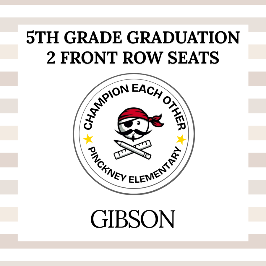 Get ready to celebrate a milestone with our exclusive auction for 5th Grade Graduation Front Row Seats for MRS. GIBSON'S CLASS! With your 2 front row seats, you'll be right there to capture every smile and cheer, making this a day to remember.