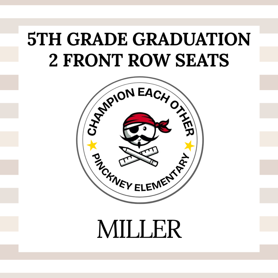 Get ready to celebrate a milestone with our exclusive auction for 5th Grade Graduation Front Row Seats for MRS. MILLER'S CLASS! With your 2 front row seats, you'll be right there to capture every smile and cheer, making this a day to remember.
