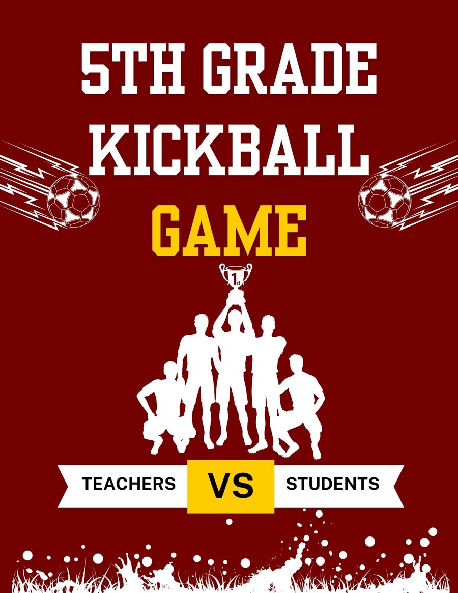 Students vs. Teachers! Join us for an epic kickball showdown as you and 4 of your friends face a thrilling match and challenge against the 5th grade teachers! As an added treat, Teachers be serving up refreshing popsicles to keep everyone cool and energized throughout the game.