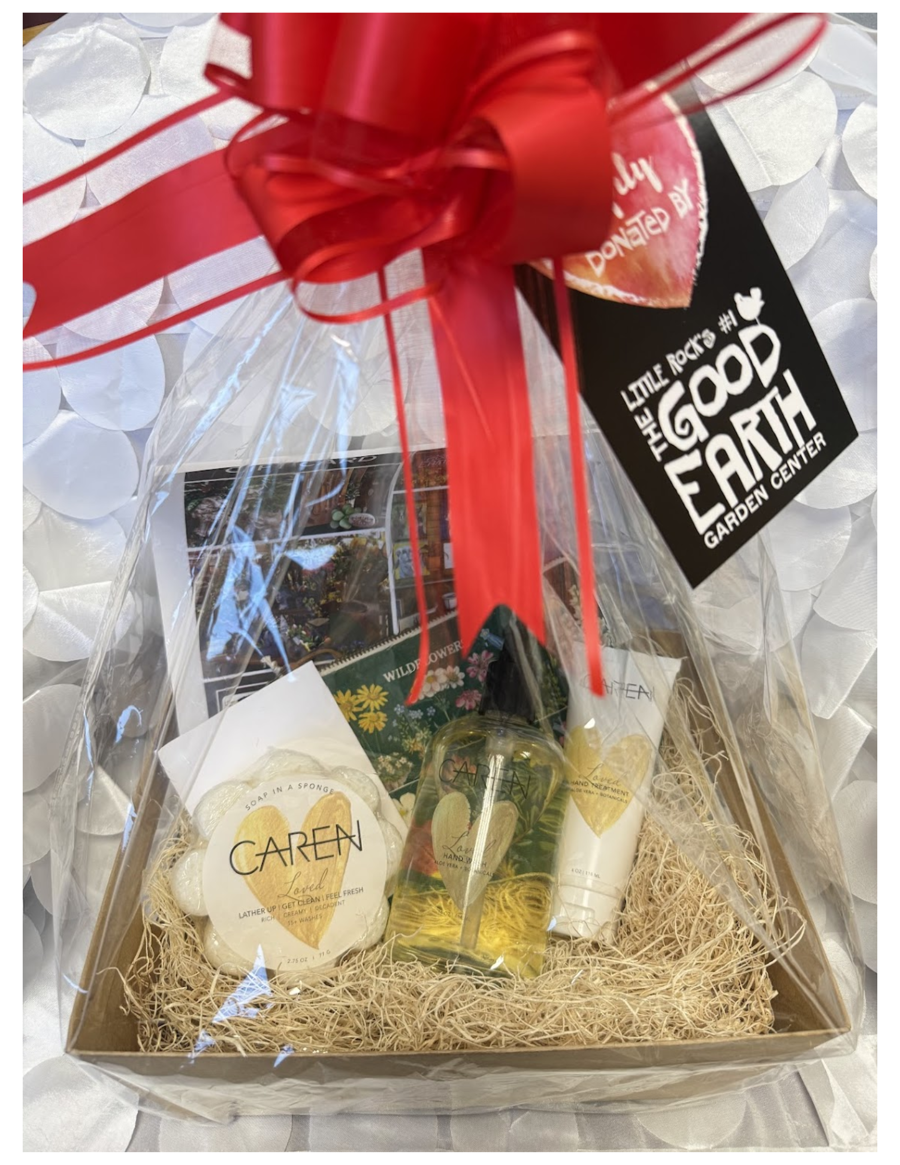 The gift basket includes Caren "Soap in a Sponge," handwash, and hand treatment!
