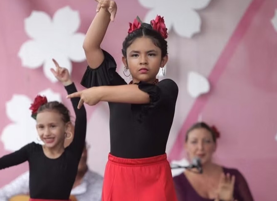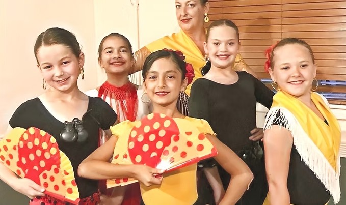 Peek into a class and you may see the group learning to stand tall and proud like royalty, stomping their feet in unison like a stampede of horses, or twirling in circles as they make their fingers open and rotate like a blossoming flower. The final steps are met with a triumphant shout from the group,... "olé!”