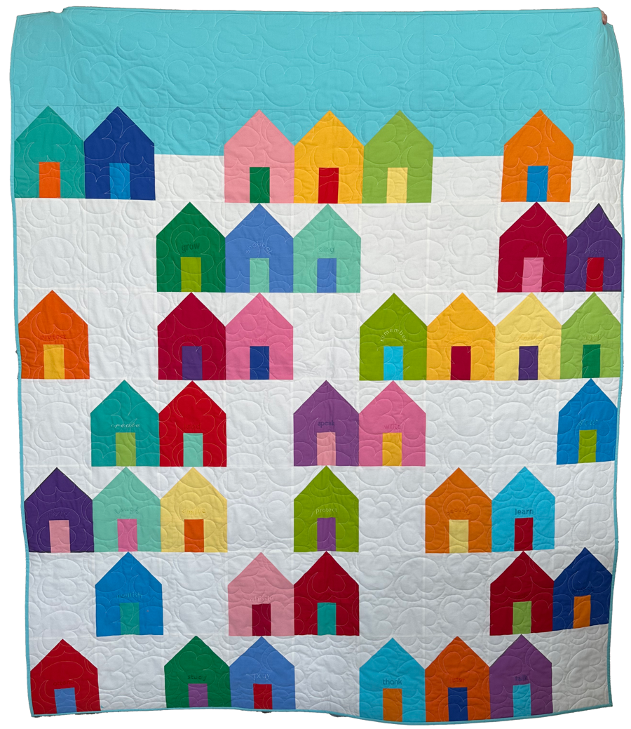 "A Community of Hope" is a stitched narrative of resilience and collective strength. It translates the concept of "home" into a colorful neighborhood of house blocks, each one a unique testament to the small gestures that hold a society together.