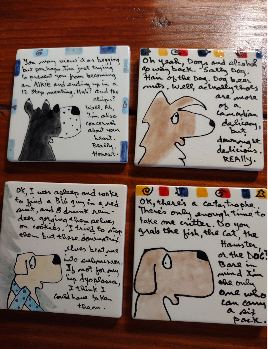 This original tile coaster set offers some serious dog wisdom. Delightful and Heartwarming!