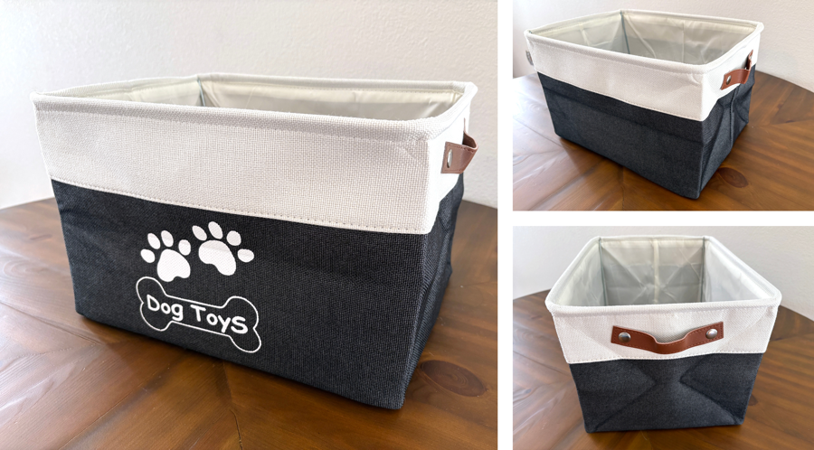 When playtime is done, keep them coralled in a toy basket. Designed with a collapsible steel frame, 15” x 11” and 9” tall.